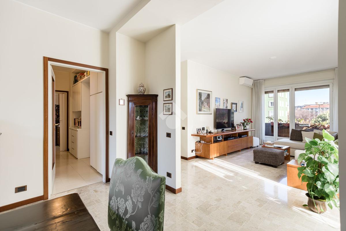 Ad. Tolstoi - In Via Bertieri, proponiamo in vendita, in contesto signorile un’ampia e luminosa soluzione abitativa, situata al quarto piano su cinque con doppi ascensori e servizio di portineria full-time. Una casa pensata per chi desidera vivere Milano con comodità, spazio e qualità. L’appartamento si distingue per la generosa metratura e l’eccellente distribuzione degli ambienti, accogliente ingresso, doppio soggiorno luminoso, ideale per ricevere ospiti o creare una zona living e dining separata, cucina semi-abitabile funzionale e ben organizzata, camera matrimoniale, due camere singole/studio o smart working, due bagni finestrati, tre balconi che regalano luce naturale e piacevoli affacci. Completano la proprietà una cantina e un comodo box auto, un vero valore aggiunto in zona. La posizione è strategica con collegamenti rapidi al centro della città grazie alla nuova metropolitana, quartiere servito da negozi, scuole, supermercati e aree verdi. Una soluzione ideale per famiglie o per chi è alla ricerca di un’abitazione definitiva in un contesto elegante e ben abitato. Spazi, luce e posizione. Qui trovi tutto ciò che serve per sentirti davvero a casa.